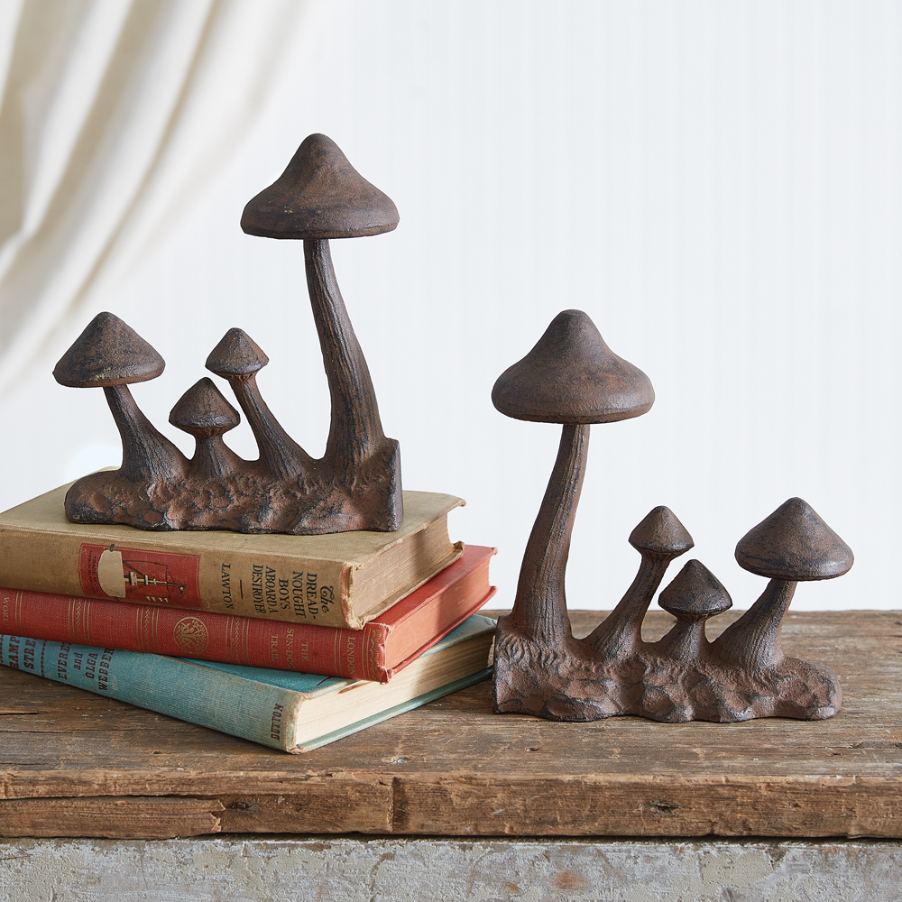 Our Mushroom Bookends bring a touch of woodland charm to your shelves. Whether gracing your study, nursery, or living room, these bookends not only keep your favorite reads neatly organized but also serve as delightful pieces of art that spark conversation and captivate imaginations. This item is crafted from cast iron and ensures durability for years to come.