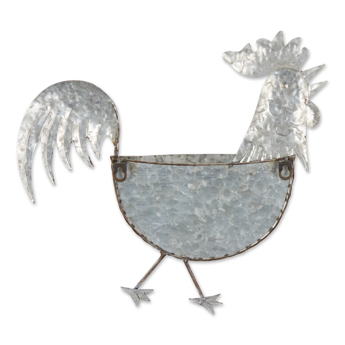 • This adorable galvanized rooster wall planter is made of iron and galvanized metal; This charming piece will add charm to any garden or indoor space